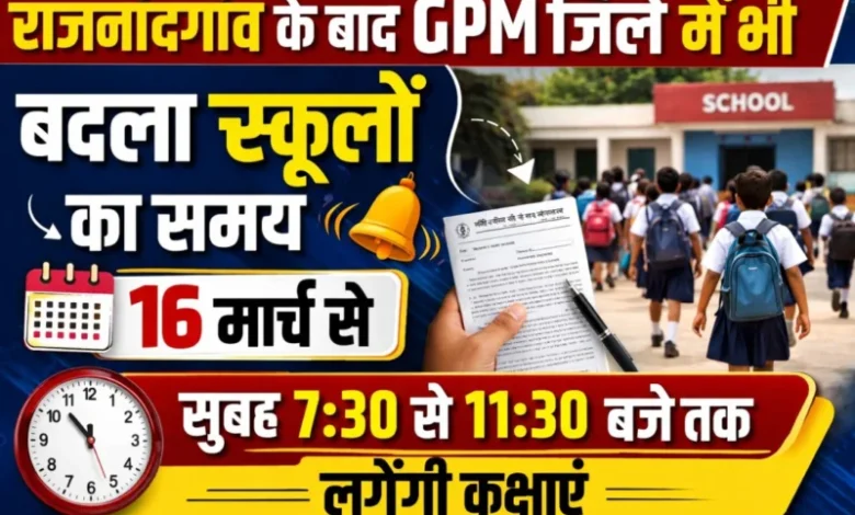 राजनांदगांव के बाद GPM जिले में भी बदला स्कूलों का समय, 16 मार्च से सुबह 7:30 से 11:30 बजे तक लगेंगी कक्षाएं