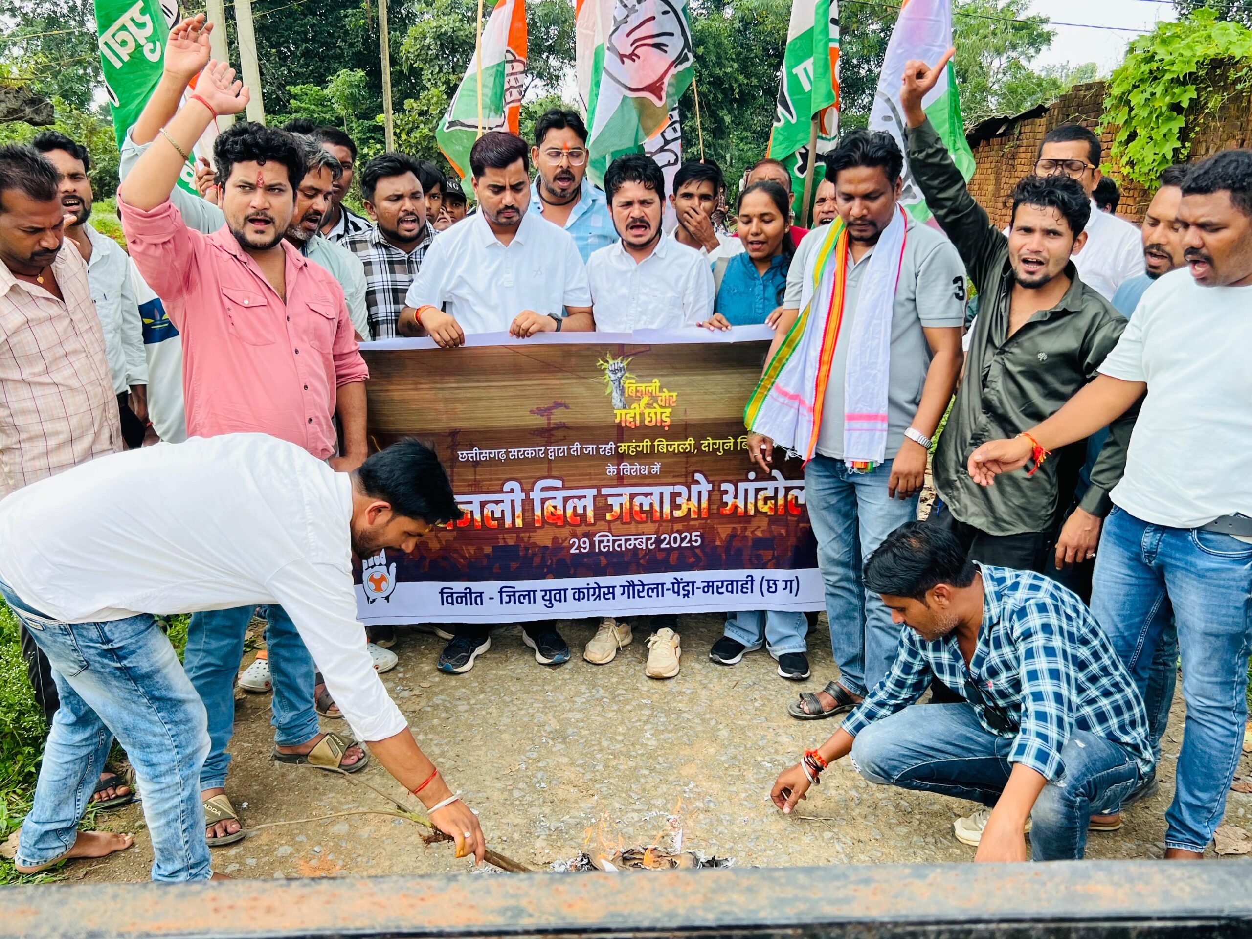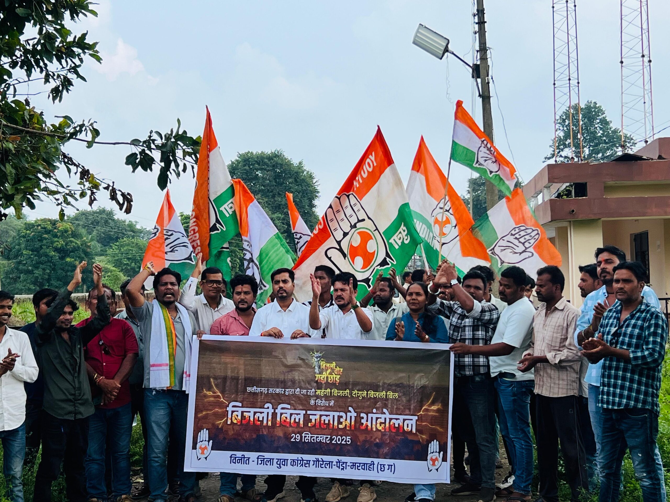 कोटमी कला (छत्तीसगढ़),बढ़ती बिजली दरों के खिलाफ आज गौरेला-पेंड्रा-मरवाही जिला युवा कांग्रेस ने जोरदार विरोध प्रदर्शन किया। प्रदेश नेतृत्व के निर्देश पर आयोजित इस आंदोलन के तहत कार्यकर्ता कोटमी कला स्थित CSPDCL बिजली ऑफिस (33KV) के सामने एकत्र हुए और दोपहर 1:00 बजे से सरकार की नीतियों के खिलाफ नारेबाज़ी शुरू कर दी। विरोध जताने के लिए कार्यकर्ताओं ने अपने बिजली बिलों की प्रतियां जलाकर सरकार पर आम जनता की जेब पर बोझ डालने का आरोप लगाया।