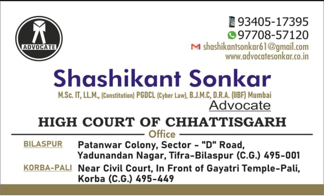 अधिवक्ता सोनकर विगत 23 वर्षों से विधि व्यवसाय में सक्रिय रहते हुए छत्तीसगढ़ उच्च न्यायालय तथा जिला एवं सत्र न्यायालय, बिलासपुर में न्यायिक सेवाएं प्रदान कर रहे हैं। मूलतः कोरबा जिले के ग्राम पाली निवासी सोनकर अपने लंबे अनुभव, विधिक ज्ञान एवं व्यावसायिक ईमानदारी के लिए अधिवक्ता समुदाय में विशेष पहचान रखते हैं।