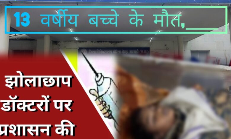 गौरेला-पेण्ड्रा-मरवाही- जिले के बिशेषरा गांव में झोलाछाप डॉक्टर की लापरवाही से एक 13 वर्षीय बच्ची की मौत हो जाने का मामला सामने आया है। मृतका का नाम खुश्बू वाकरे बताया गया है, जो गांव की ही शाला में सातवीं कक्षा की छात्रा थी।