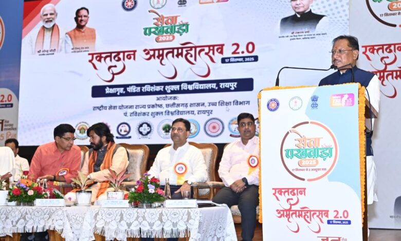 शिक्षा ही सफलता की कुंजी, सेवा ही जीवन का आधार : मुख्यमंत्री श्री विष्णुदेव साय मुख्यमंत्री श्री साय रक्तदान अमृतोत्सव 2.0 कार्यक्रम में हुए शामिल