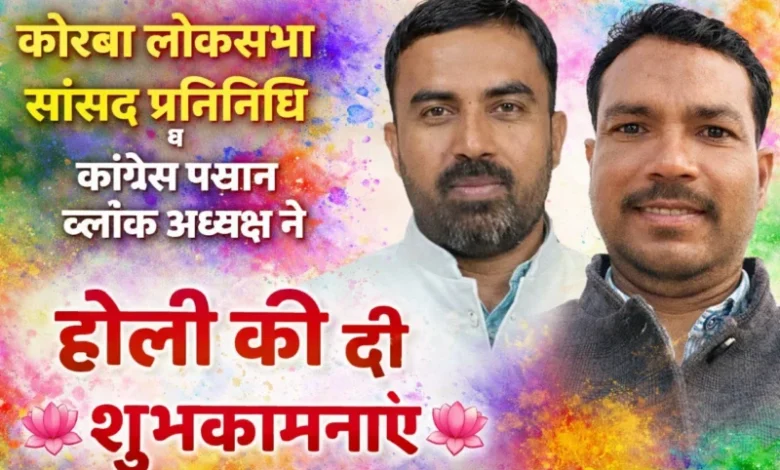 होली के पावन पर्व पर कोरबा को प्रेम और सौहार्द का संदेश, जुनैद खान एवं जगतपाल सिंह आयम ने दी शुभकामनाएं