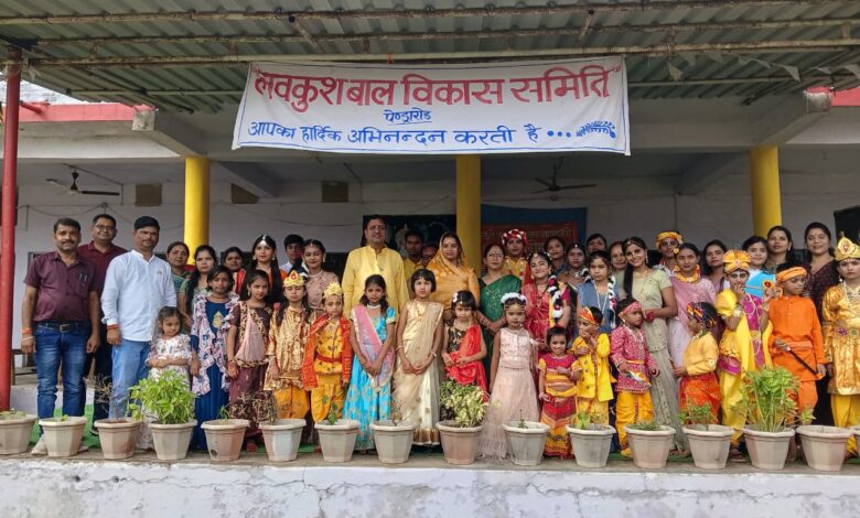 कार्यक्रम का शुभारंभ भारत माता एवं भगवान श्रीकृष्ण के तैलचित्र के पूजन से हुआ। नन्हें-मुन्ने बच्चों ने राधा–कृष्ण की वेशभूषा में आकर्षक प्रस्तुतियां देकर सबका मन मोह लिया।