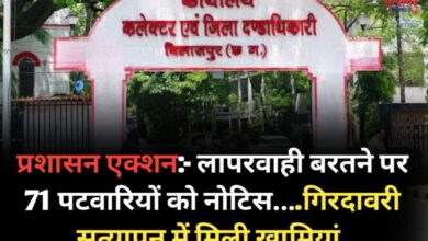 बिलासपुर : जीसान अंसारी रिपोर्ट बिलासपुर : गिरदावरी कार्य में लापरवाही बरतने पर 71 पटवारियों को शो कॉज नोटिस जारी…