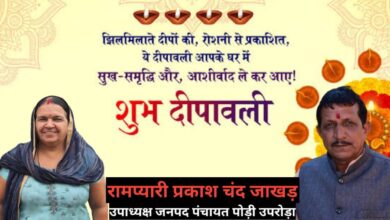 जनपद उपाध्यक्ष रामप्यारी प्रकाश चंद जाखड़ ने क्षेत्र वासियों को दीपावाली की दिए बधाई व शुभकामनायें।