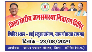 कोरिया जिले के ग्राम पंचायत रामगढ़ में जनसमस्या निवारण शिविर का आयोजन 23 अगस्त को ग्रामीणों की समस्या, शिकायत का…