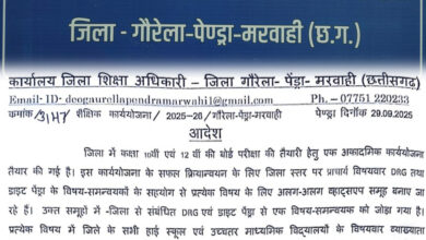 मिथलेश आयम, गौरेला पेंड्रा मरवाही(खबरों का राजा) । छत्तीसगढ़ शासन, स्कूल शिक्षा विभाग ने बड़े पैमाने पर प्रशासनिक फेरबदल करते…