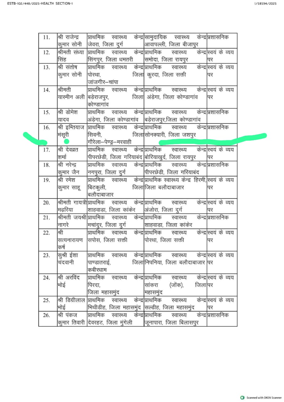 इम्तियाज मंसूरी पहले सिवनी (मरवाही ब्लॉक) में पदस्थ थे। 25 जून 2025 को उनका जिला स्तर पर स्थानांतरण आदेश जारी हुआ।