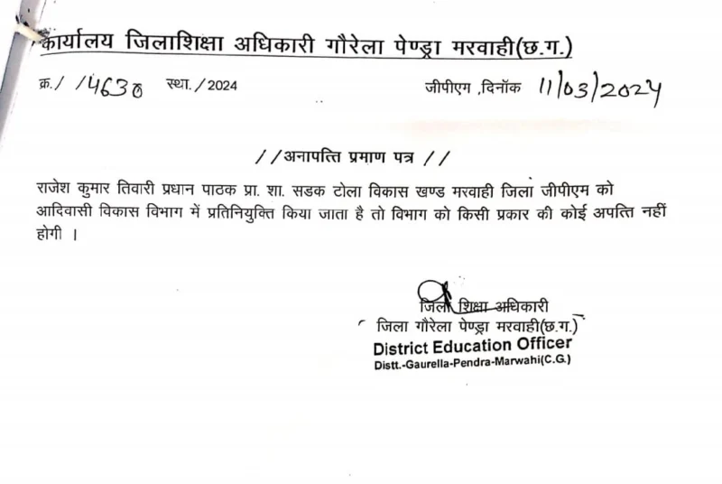 सबसे ज्यादा चौंकाने वाली बात यह है कि जारी किए गए अनापत्ति प्रमाण पत्र, यानी NOC, में ही संबंधित शिक्षक को आदिवासी विकास विभाग में “प्रतिनियुक्ति” पर भेजे जाने का उल्लेख कर दिया गया है।