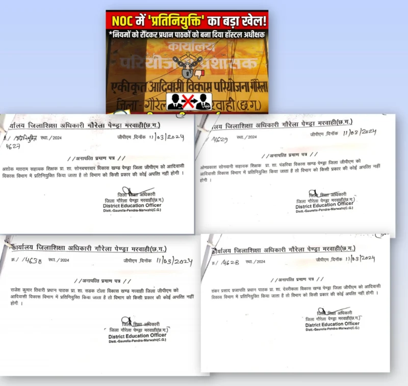 गौरेला–पेंड्रा–मरवाही का यह मामला अब केवल एक नियुक्ति का मुद्दा नहीं रह गया है, बल्कि यह पूरे प्रशासनिक ढांचे की पारदर्शिता, जवाबदेही और नियमों के पालन की वास्तविक स्थिति को उजागर कर रहा है। अब सभी की नजर इस बात पर टिकी है कि क्या इस ‘NOC में प्रतिनियुक्ति’ के खेल की जांच होगी, क्या जिम्मेदार अधिकारियों पर कार्रवाई की जाएगी, या फिर यह मामला भी अन्य विवादों की तरह धीरे-धीरे फाइलों में दबकर रह जाएगा। फिलहाल, शिक्षा विभाग या आदिवासी विकास सवालिया निशान खड़ा है और जवाब देने वाला कोई नजर नहीं आ रहा..?