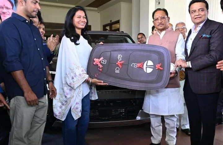 रायपुर 14 मार्च 2026/ मुख्यमंत्री श्री विष्णुदेव साय ने आज नवा रायपुर स्थित अपने निवास में आयोजित एक गरिमामय समारोह में भारतीय महिला क्रिकेट टीम की फिजियोथेरेपिस्ट और छत्तीसगढ़ की बेटी श्रीमती आकांक्षा सत्यवंशी को टाटा सिएरा कार उपहार स्वरूप प्रदान की। इस अवसर पर मुख्यमंत्री ने श्रीमती आकांक्षा को बधाई देते हुए कहा कि हमारी बेटियों ने विश्व कप जीतकर देश का गौरव बढ़ाया है। उन्होंने महिला क्रिकेट टीम के सम्मान और प्रोत्साहन के लिए टाटा मोटर्स द्वारा कार उपहार देने की इस पहल की सराहना की।