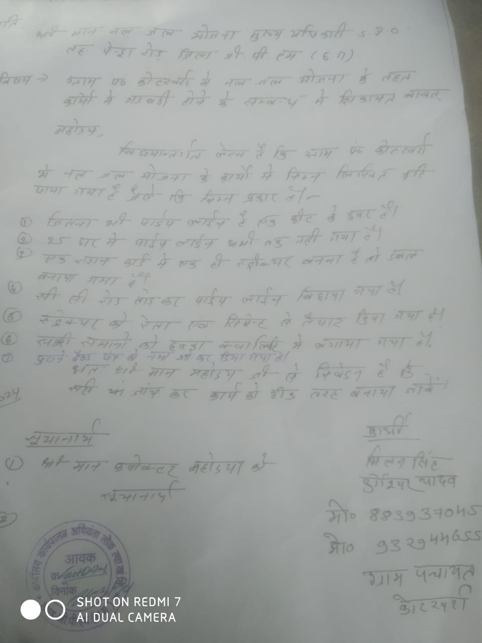 1. जितना भी पाइप लाइन का कार्य हुआ हैं 1 फिट के ऊपर हैं।